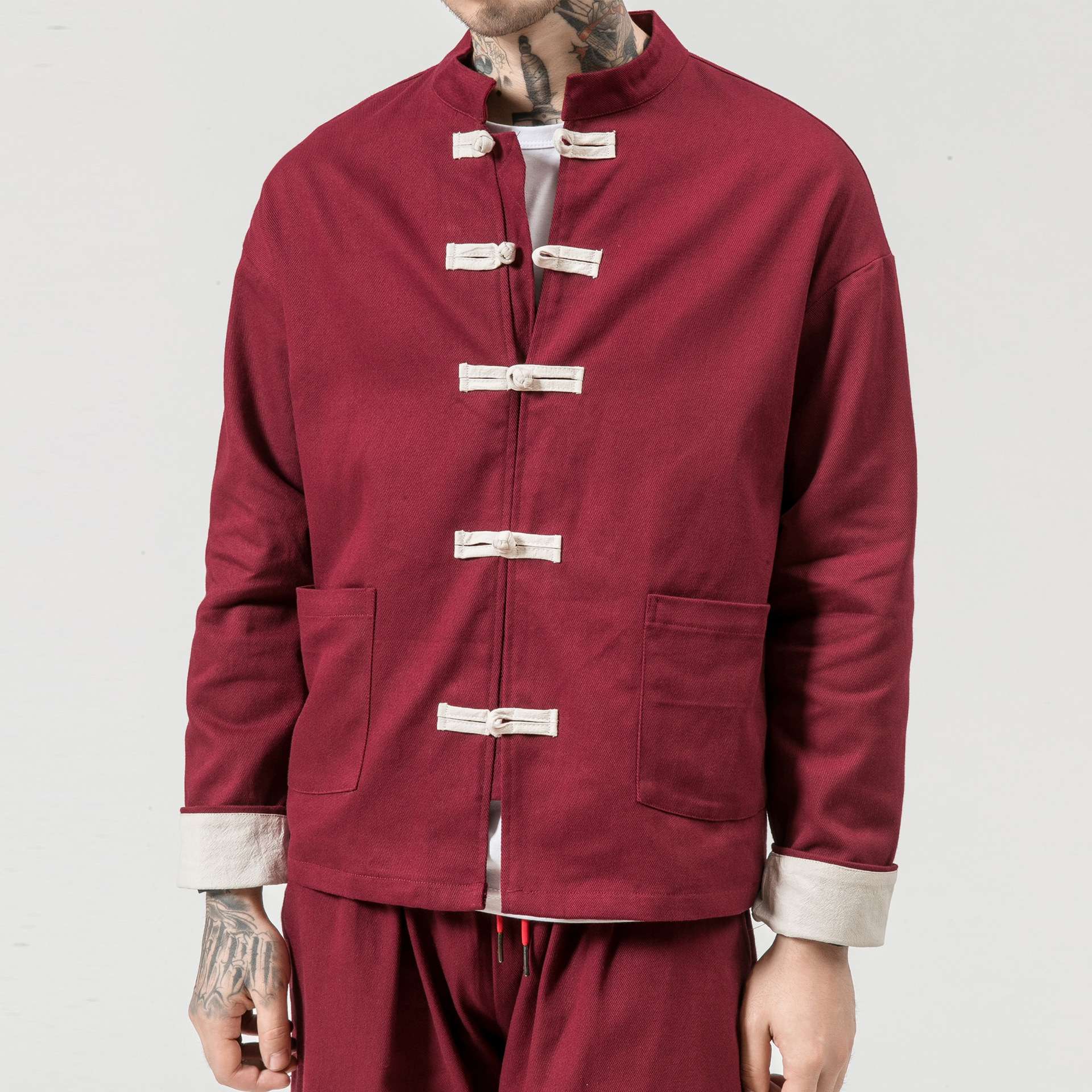Chinese Wind Cotton Buckle Large Men's Casual Jacket Jacket Retro Stand-up Collar Tang Suit Top Batch