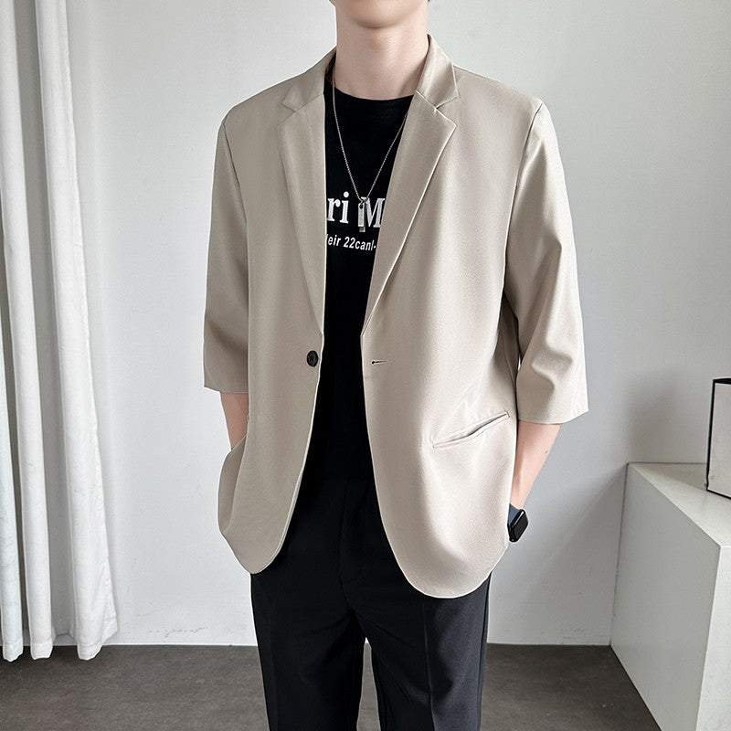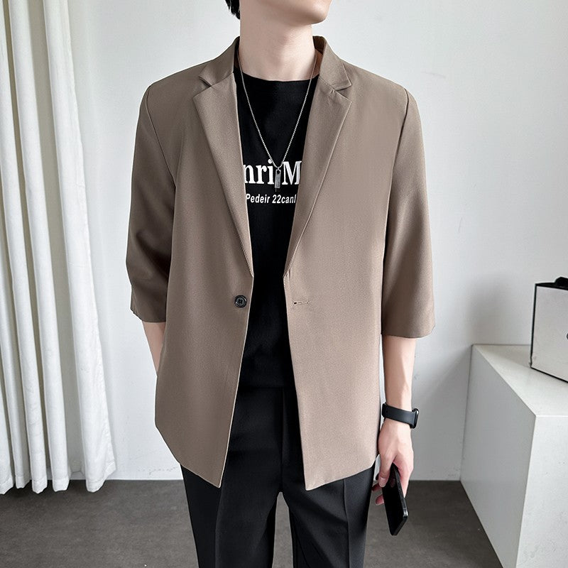 Men's Casual Seven-Five Sve Suit Jaet Thin Summer Faionable Korean Sle Five-Five ort Sve Small Western Clothes