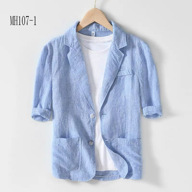 Summer thin pure linen five quarter sleeve casual suit men's top jacket Japanese style artistic casual suit MH107