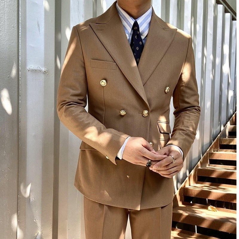 Blazer Casual Suit Classic Navy blue Double-breasted Metal Buttons High Quality Top Shirt Regular Length Retro Jacket 3 colors