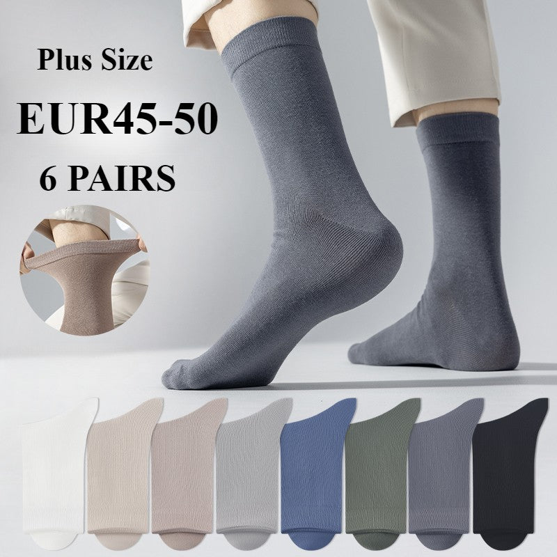 6 Pairs EUR44-50 Plus Size Men Socks High Quality Cotton Socks Breathable Mid Tube Sports Business Socks Black White
