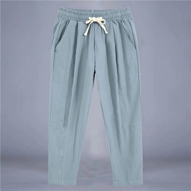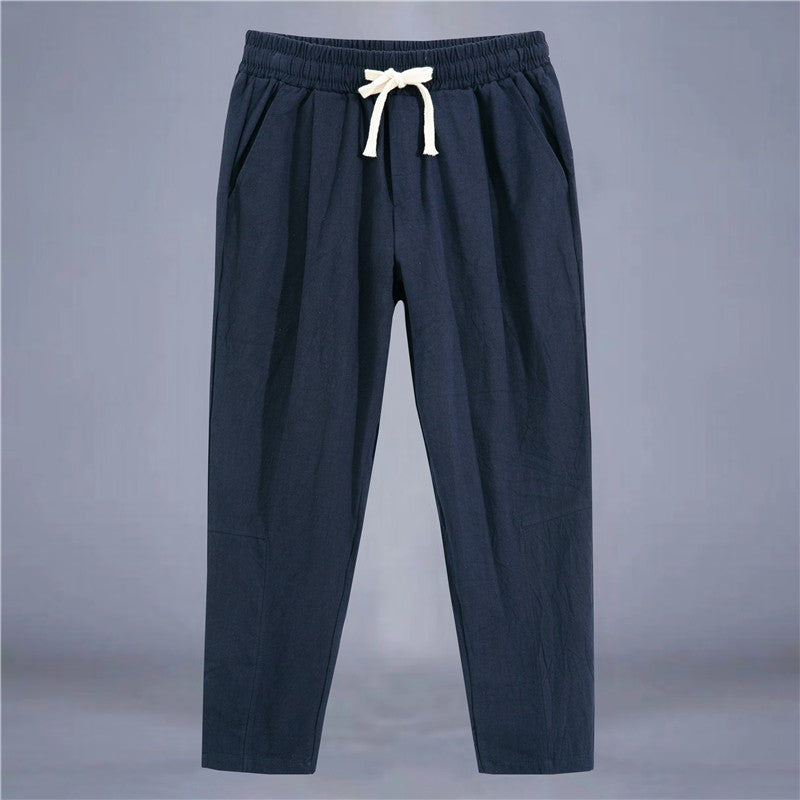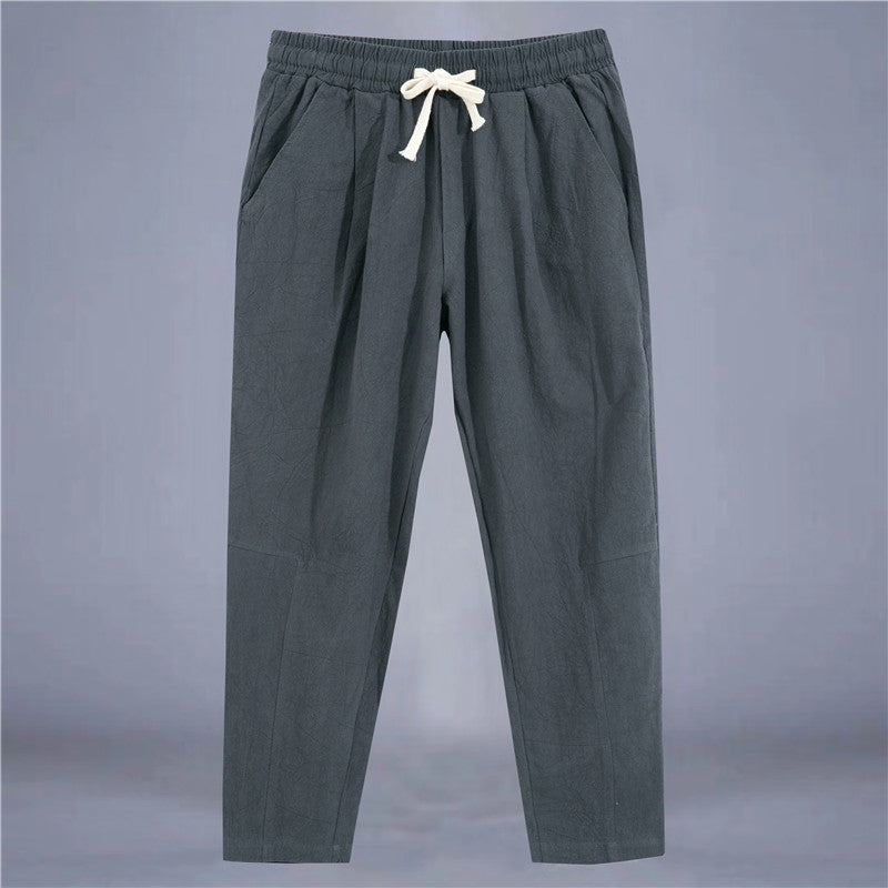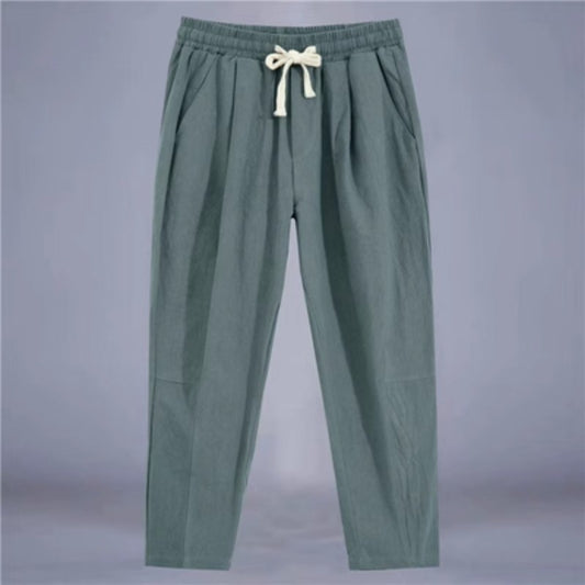 Men's Trousers Cotton Linen Fashion Casual Pants Solid Color Breathable Loose Shorts Straight Drawstring Pants Streetwear Men
