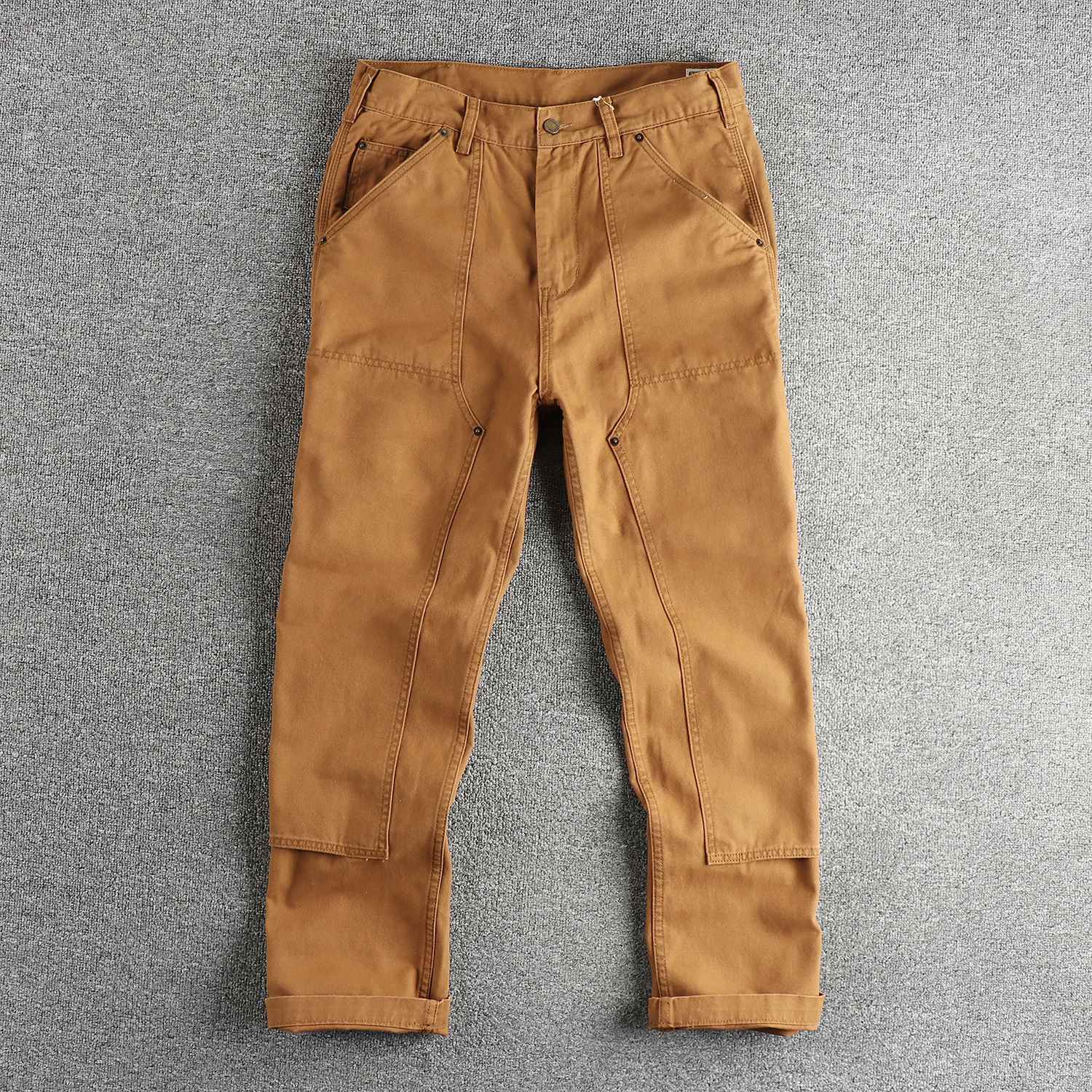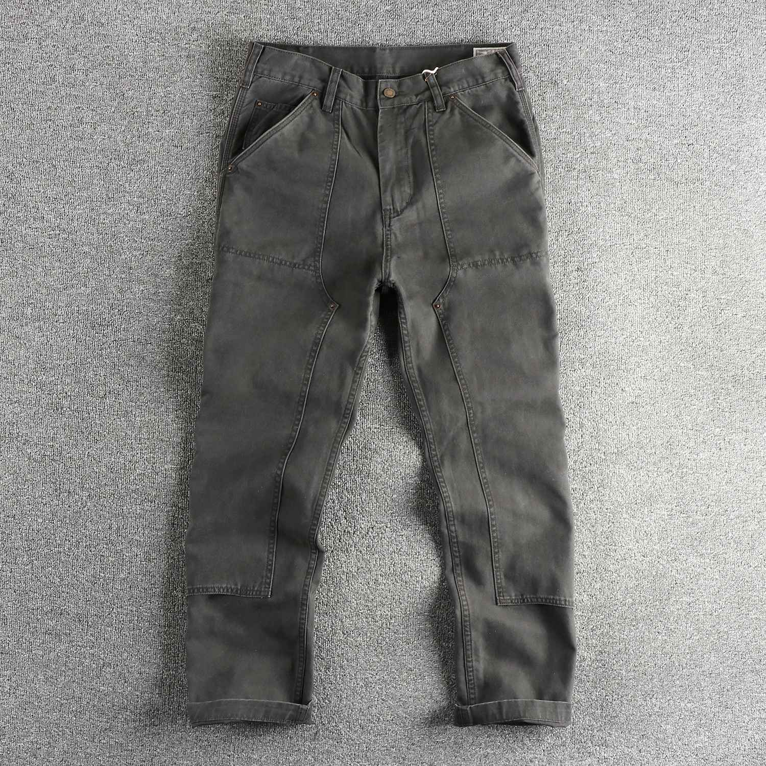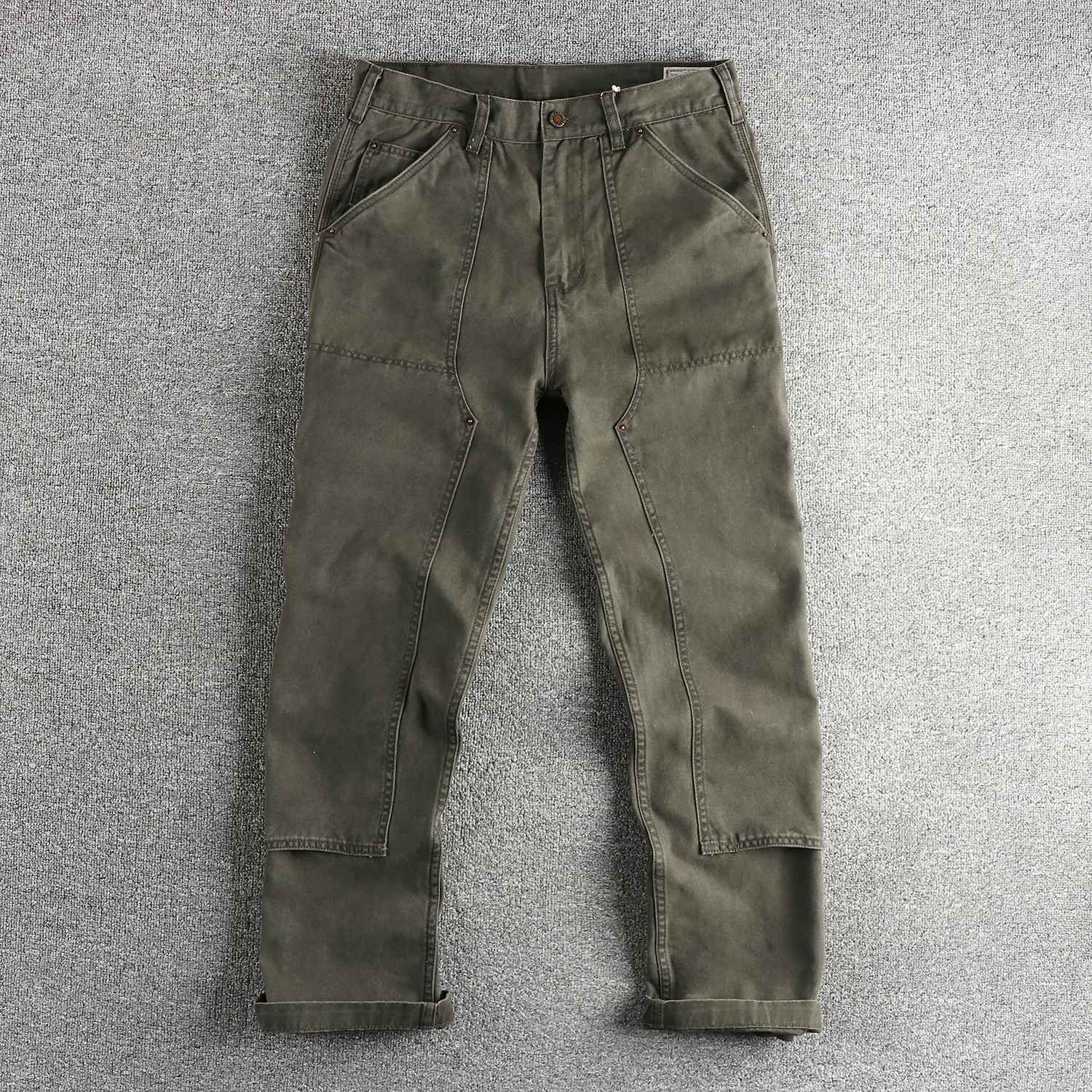 2025 Spring New American Retro Amekaji Heavyweight Woven Cargo Pants Men's Simple 100% Cotton Washed Straight Casual Trousers