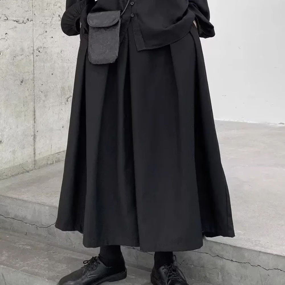 Mens Gothic Dark Style Loose Cropped Hakama Wide Leg Design Sense High Waist Samurai Pants Fashion Straight Male Skirt Pants