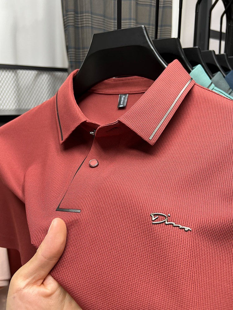 Men's New Embroidered Business Casual Short Sleeved Polo Shirt, Fashionable Short Sleeved Comfortable Breathable Top