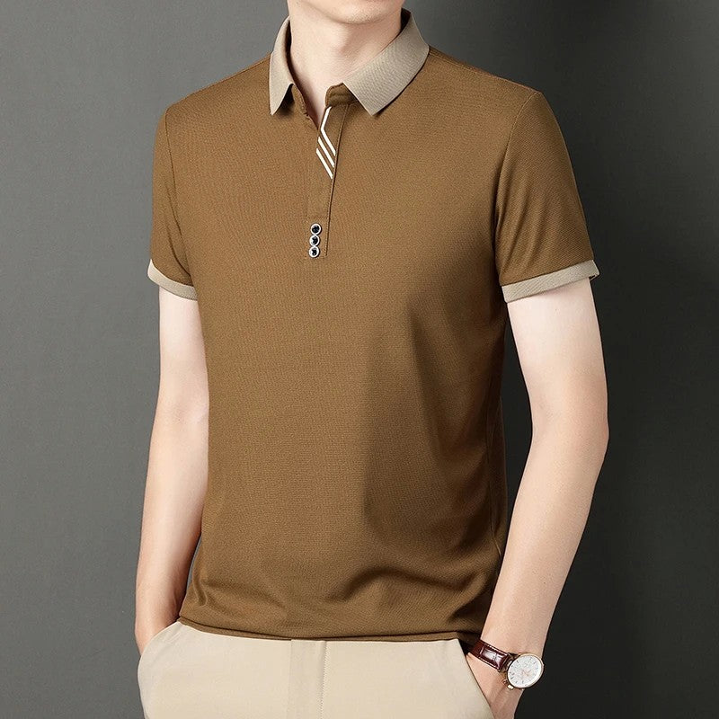 Men's Fashion Solid Short Sleeved Polo Shirt Summer Breathable Comfortable Top