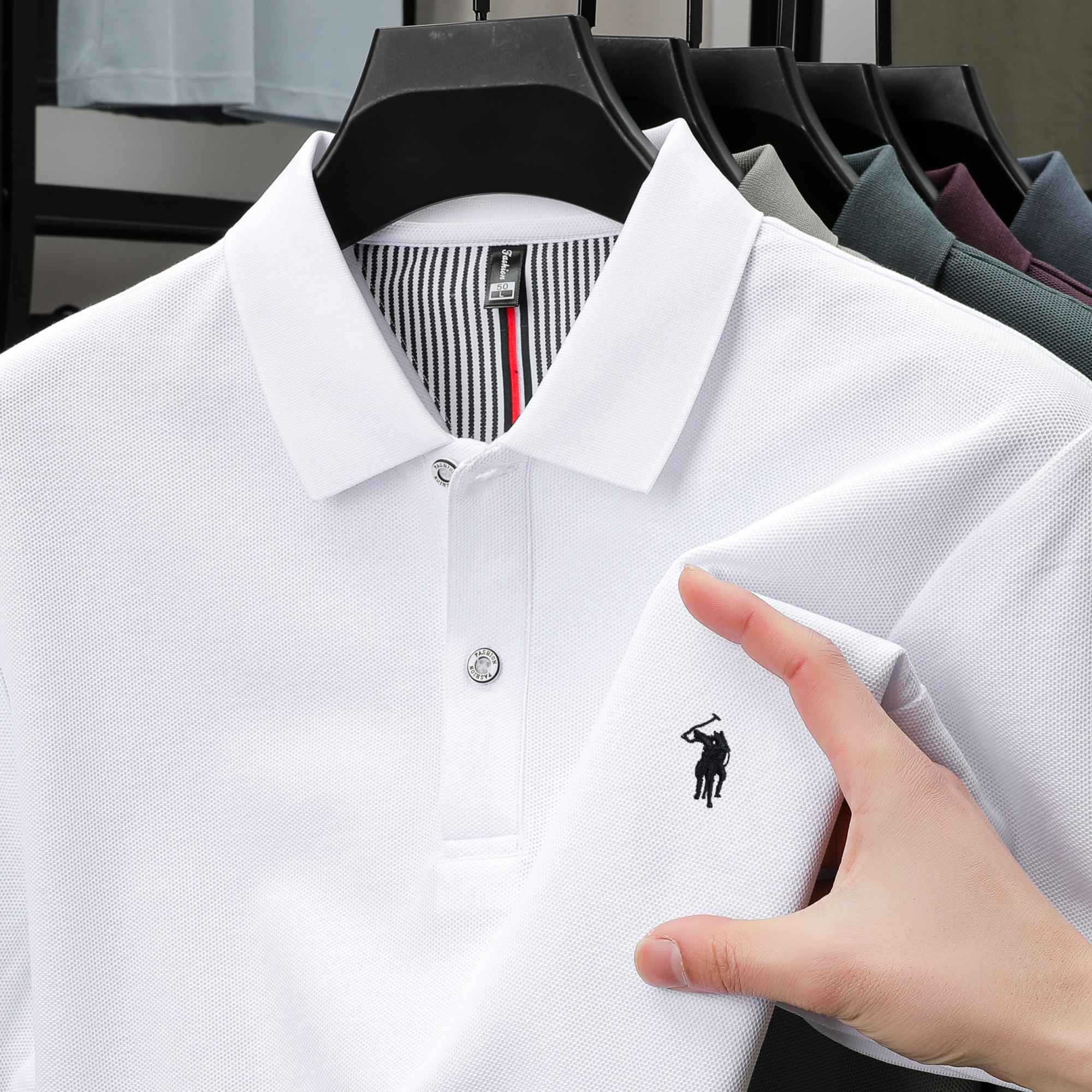 2024 Solid Color Polo Shirt Men's Business Polo Collar Half sleeved Top 2024 Summer Casual Short sleeved T-shirt for Men an