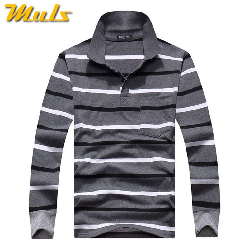 Cotton Polos Men Long Sleeve Mens Polo Shirt Spring Autumn Striped Male Polo Dress Classic Business 2018 Father Gift Drop Ship