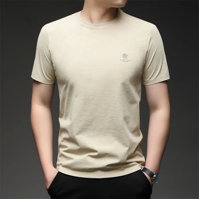 High Quality Summer Men's 2025 New Short Sleeved T-shirt with Striped Half Sleeves Trendy T-shirt Polo Shirt for Men