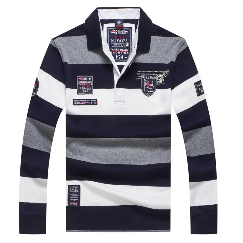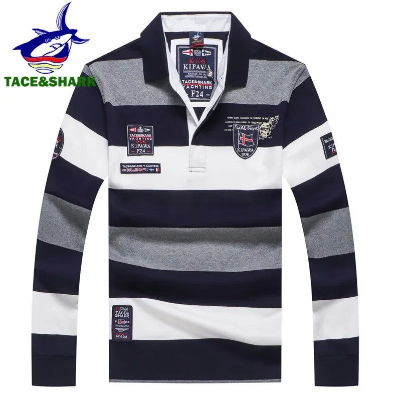 TACE&SHARK Brand 2018 New Style Fashion Shark Long Sleeve Polo Men Stripe Camisa Masculina Polo Clothing Casual Business Homme