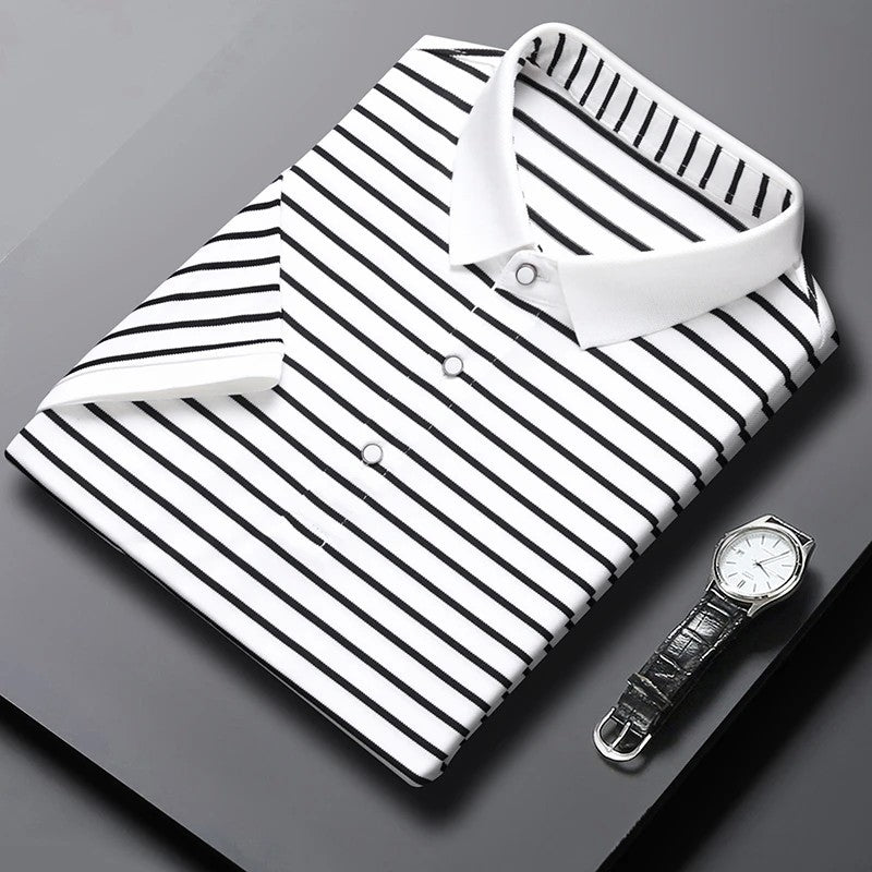 2024 Men's New Striped Cotton Business Casual Short Sleeved POLO Shirt Fashion Short Sleeved Comfortable and Breathable Top