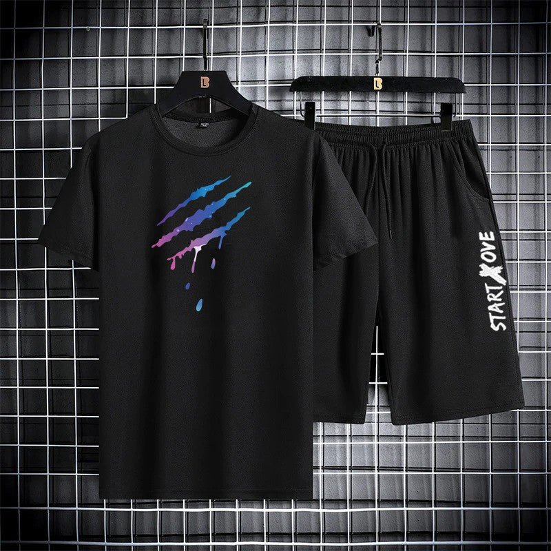 2024 Fashionable and casual summer outdoor sports suit men's breathable T-shirt shorts casual and fashionable two-piece set