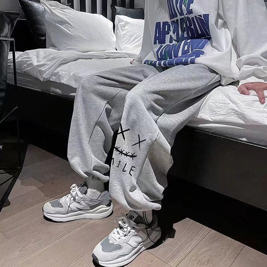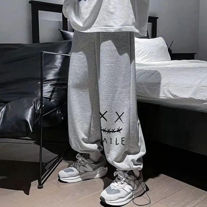 Plus Size M-8XL Men Pants Oversized Sports Pant Fashion Trend Cartoon Smiling Face Printed Long Pants Loose Casual Sweatpants