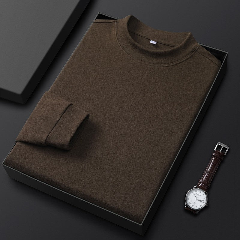 2-piece Autumn/Winter Men's Classic Fashion Basic Warm Underwear Set Loose Large Half High Collar Top T-shirt Elastic Waist Pant