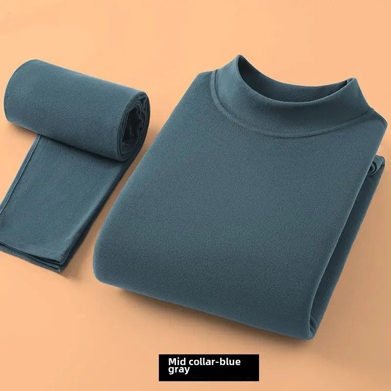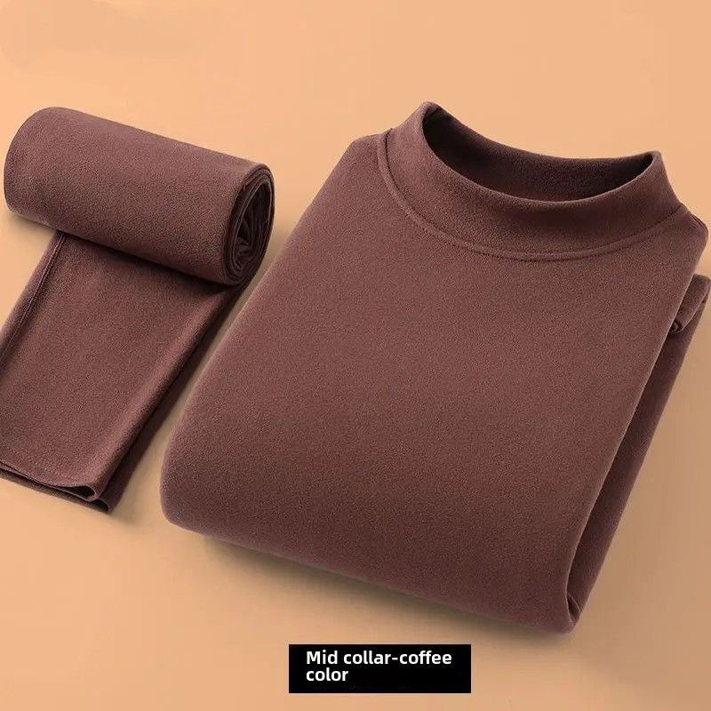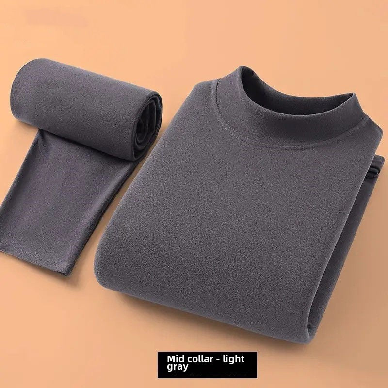 Winter Top and Pants Set Home Wear Warmth Solid Casual Men's Deerskin Thermal Suit High Collar Underwear Heat Velvet Tshirt Set