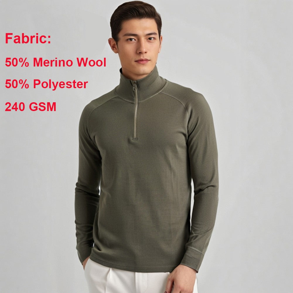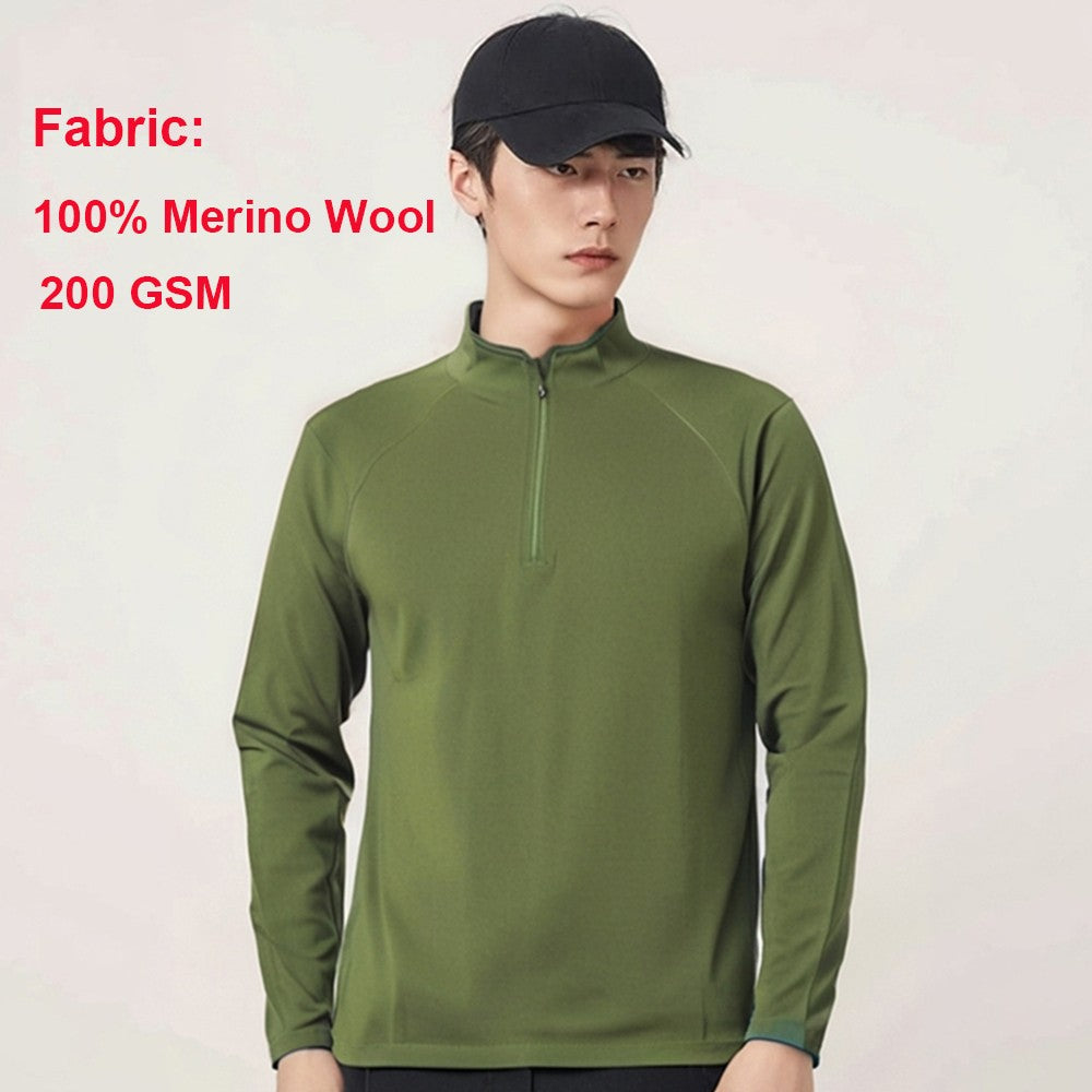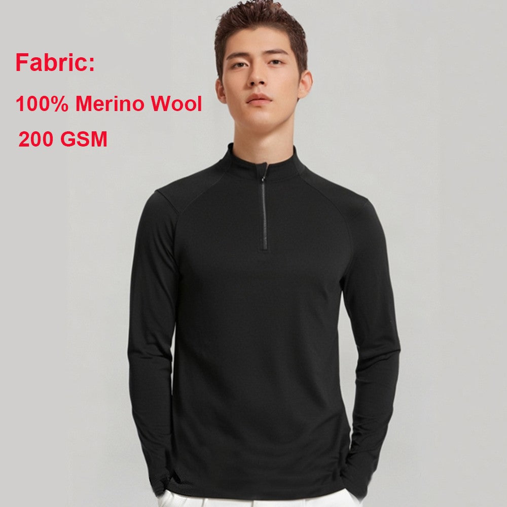 42% Merino Wool Base Layer Shirt Men 1/2 Zip Thermal Underwear Long Sleeve Shirts 210G Hiking Sports Breathable Wicking Moisture