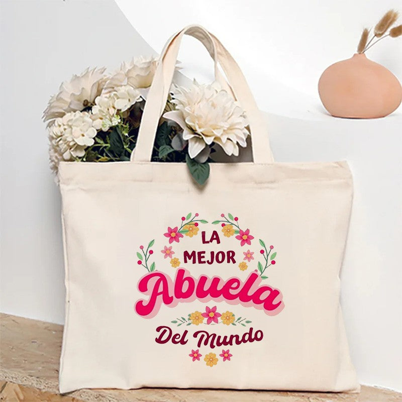 Spanish Abuela Quote Tote Bag Vibrant Shoulder Handbag with Heart Ribbon Design Perfect for Mother’s Day & Grandma Appreciation