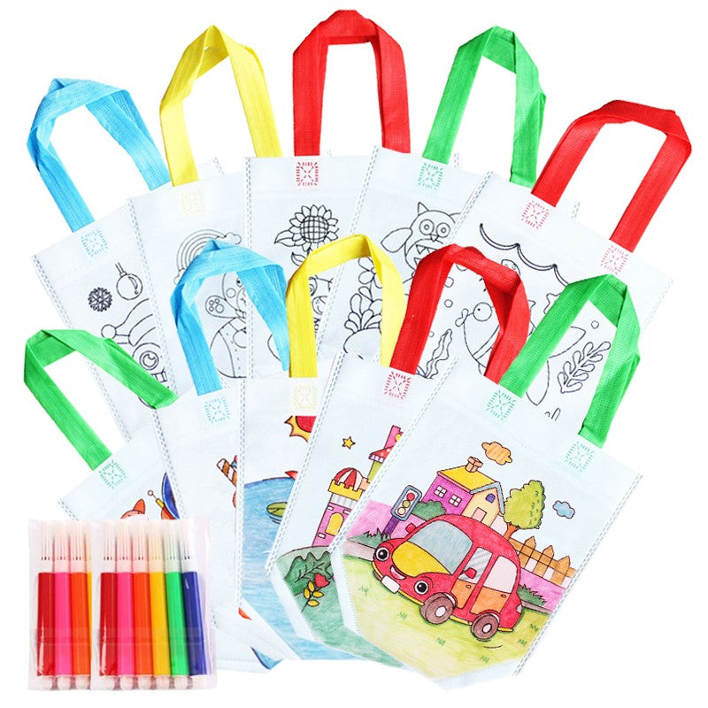 5Pcs DIY Coloring Bags with Markers Carnival Art Party Goodie Bags for Kids Eco Mini Non-Woven Fabric Shopping Storage Bags