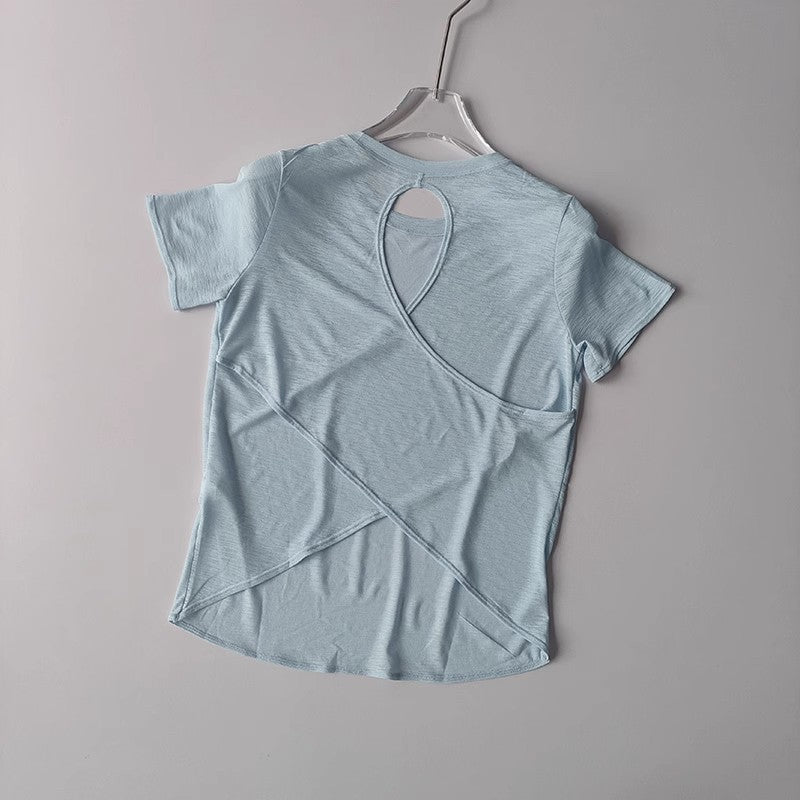 Women's Tight Sports T-shirt Quick Dry Short Sleeve Yoga T-shirt Pilates Fitting Fitness Back Hollow Out Running T-shirt