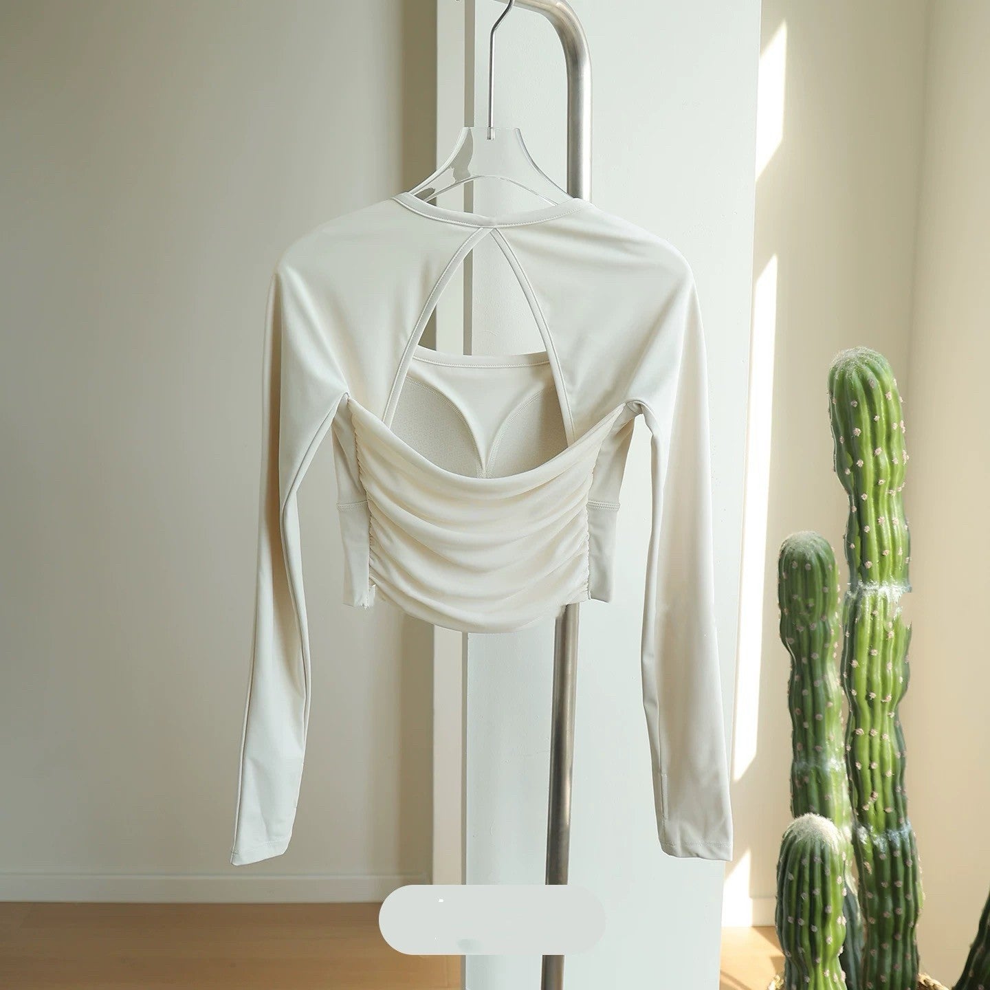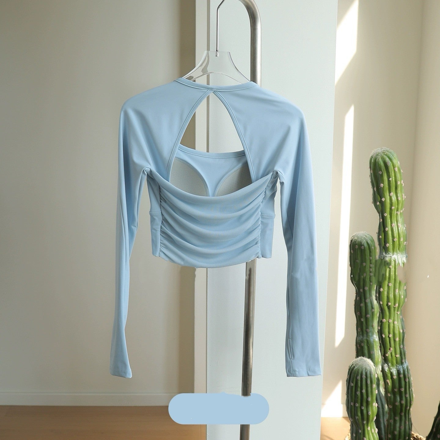 Women's Long-Sleeve Sports Top with Chest Pads, Yoga Wear, Pilates Training Fitness Apparel, Running