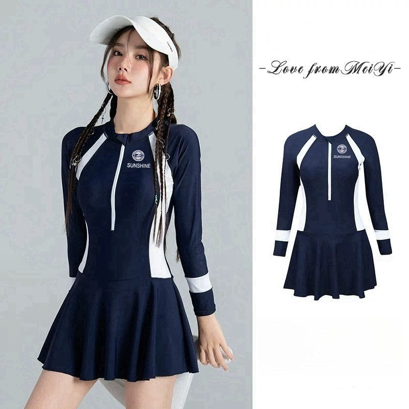 Black and White Color Matching One-piece Sports Small Chest Gathered To Cover The Belly Weight Swimming Sun Protection Swimsuit