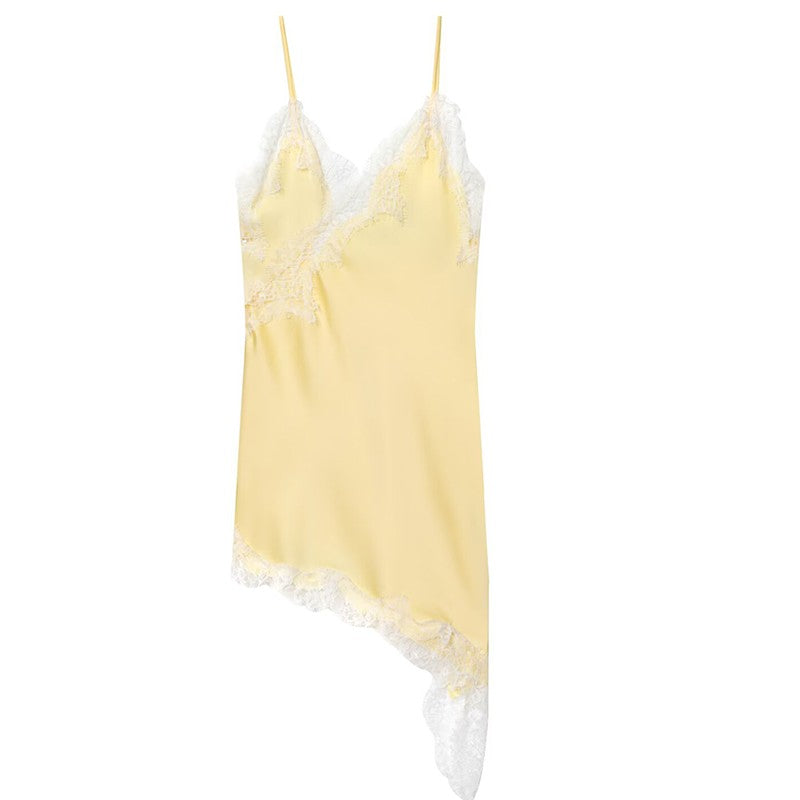 HXAO Female Lace Dress Sleeveless Slip Short Dresses Women Summer Asymmetric Elegant Night Dresses Backless Sexy Evening Dress