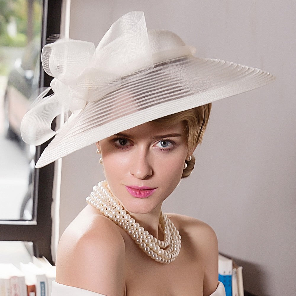 Elegant Kentucky Tea Party Fascinators White Weddings Hat For Women Wide Brim Hats Fedora Ladies Church Dress Derby Hats