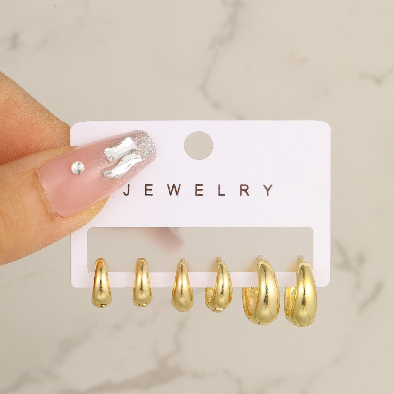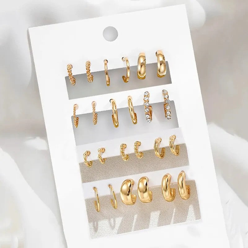 Gold Color Vintage Circle Hoop Earrings for Women Simple Fashion Geometric Zircon Earring Set New Trendy Jewelry Party Gifts