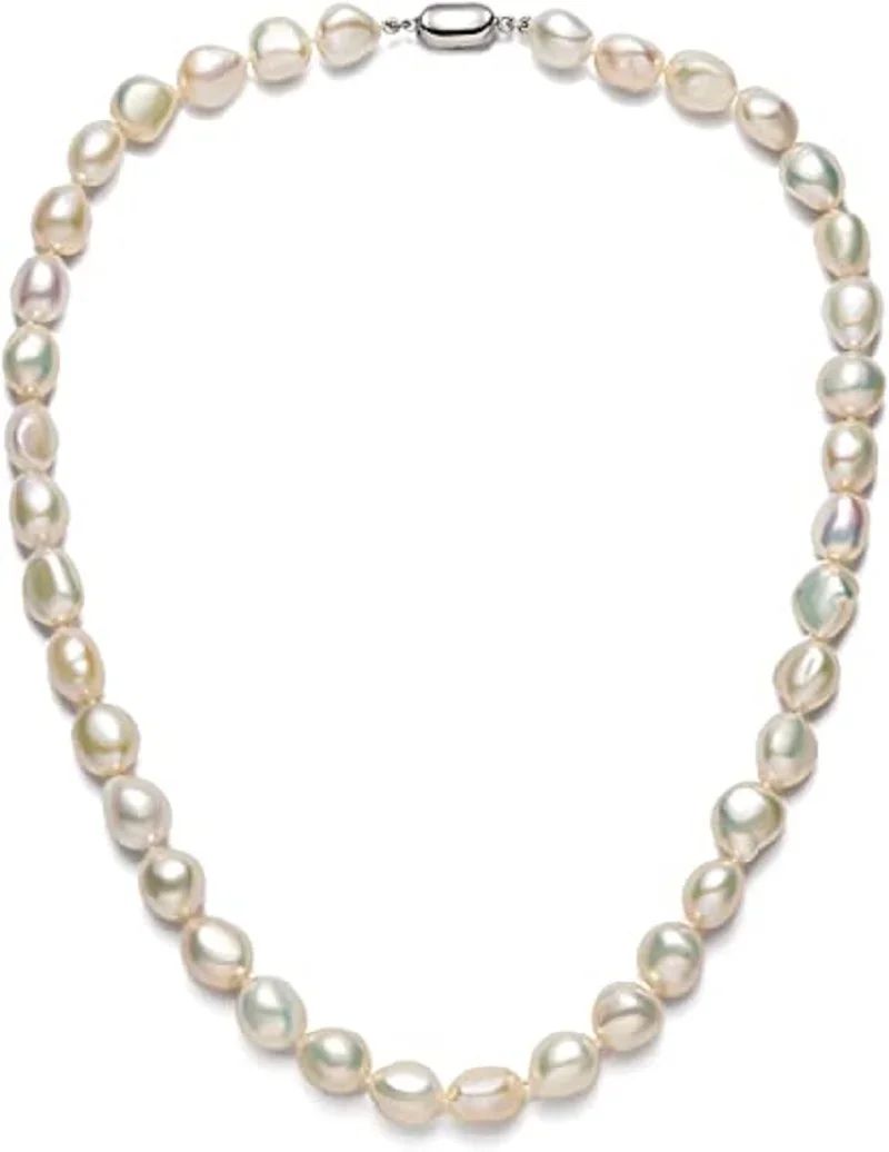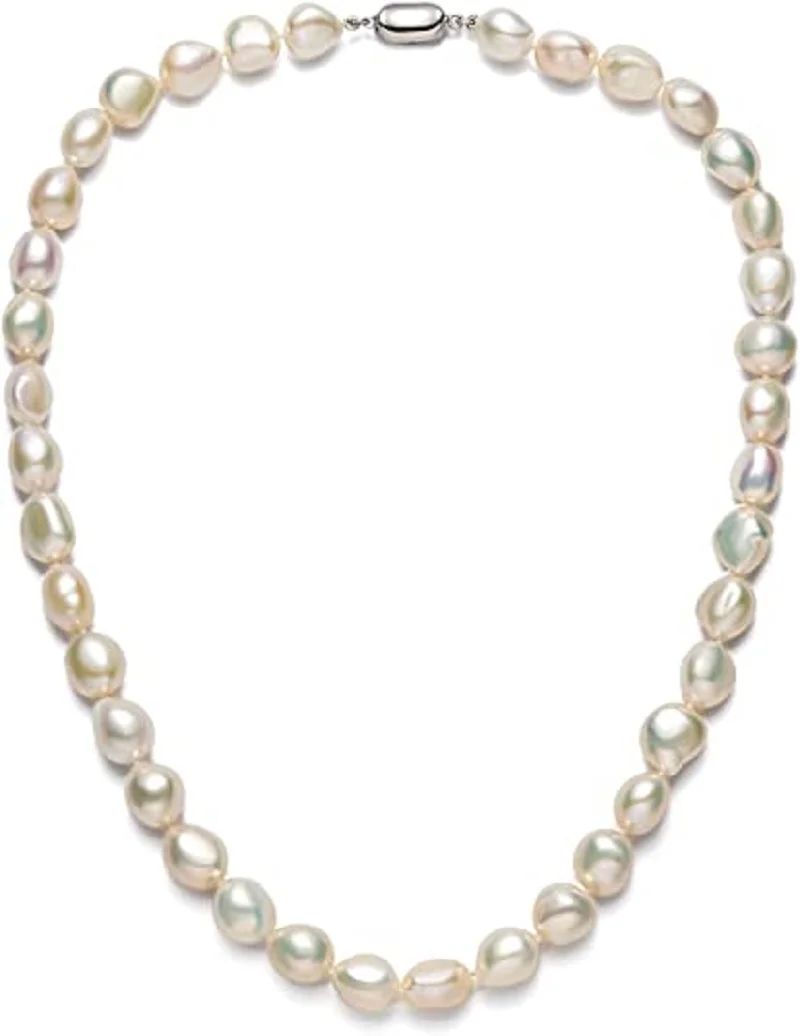 Baroque Pearl Necklace for Women 8-9mm 9-10mm AA Quality Freshwater Cultured Pearl Strand Necklace with Sterling Silver Clasp