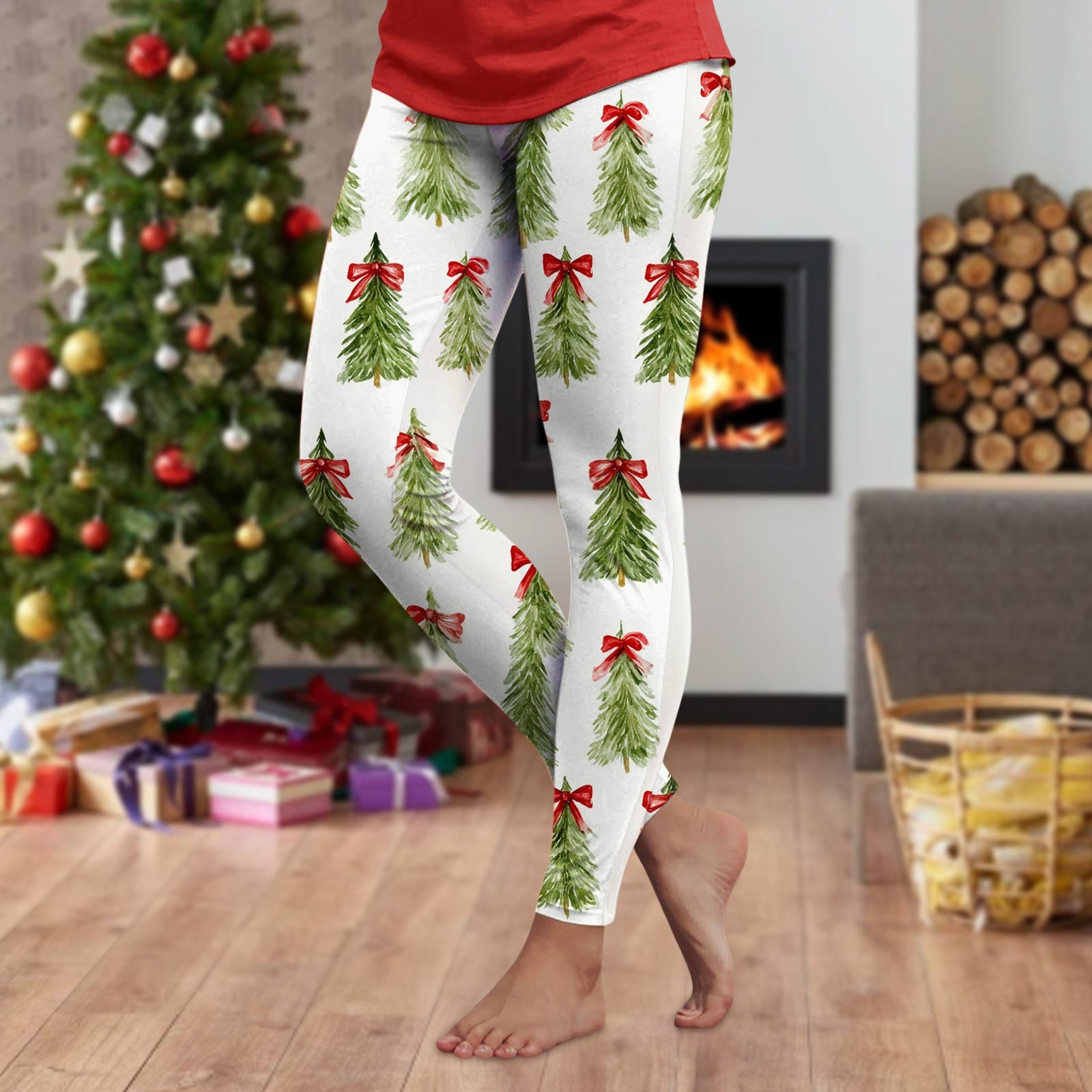 3d Cartoon Pattern Christmas Women's Leggings High Waist Slim Stretch High Waist Tights New Year Home Party Pant Bottom Legging