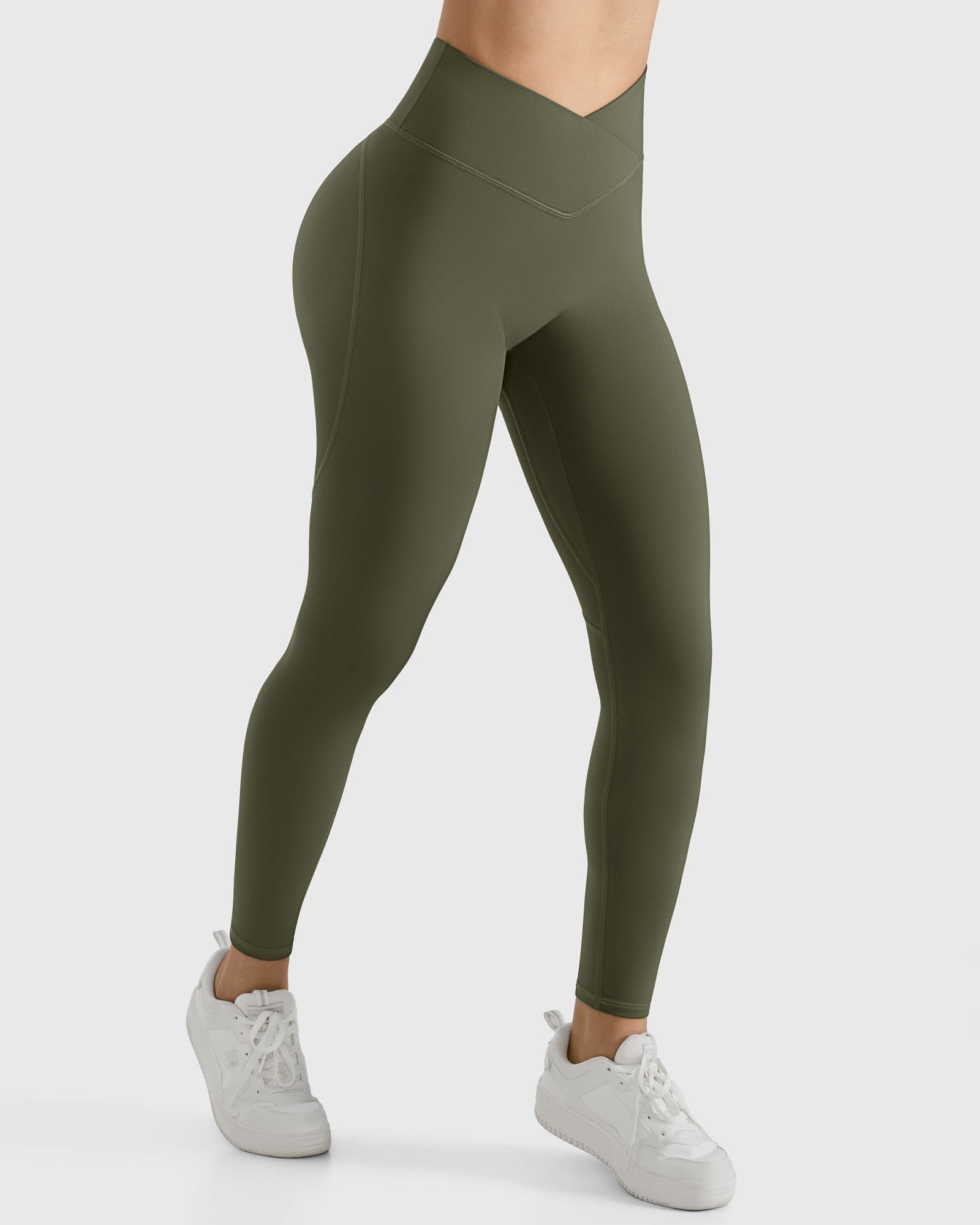 Women V Cross Waist Butt Lifting Leggings with Pockets High Waist Yoga Pants Workout Running Gym Fitness Sports Leggings Female
