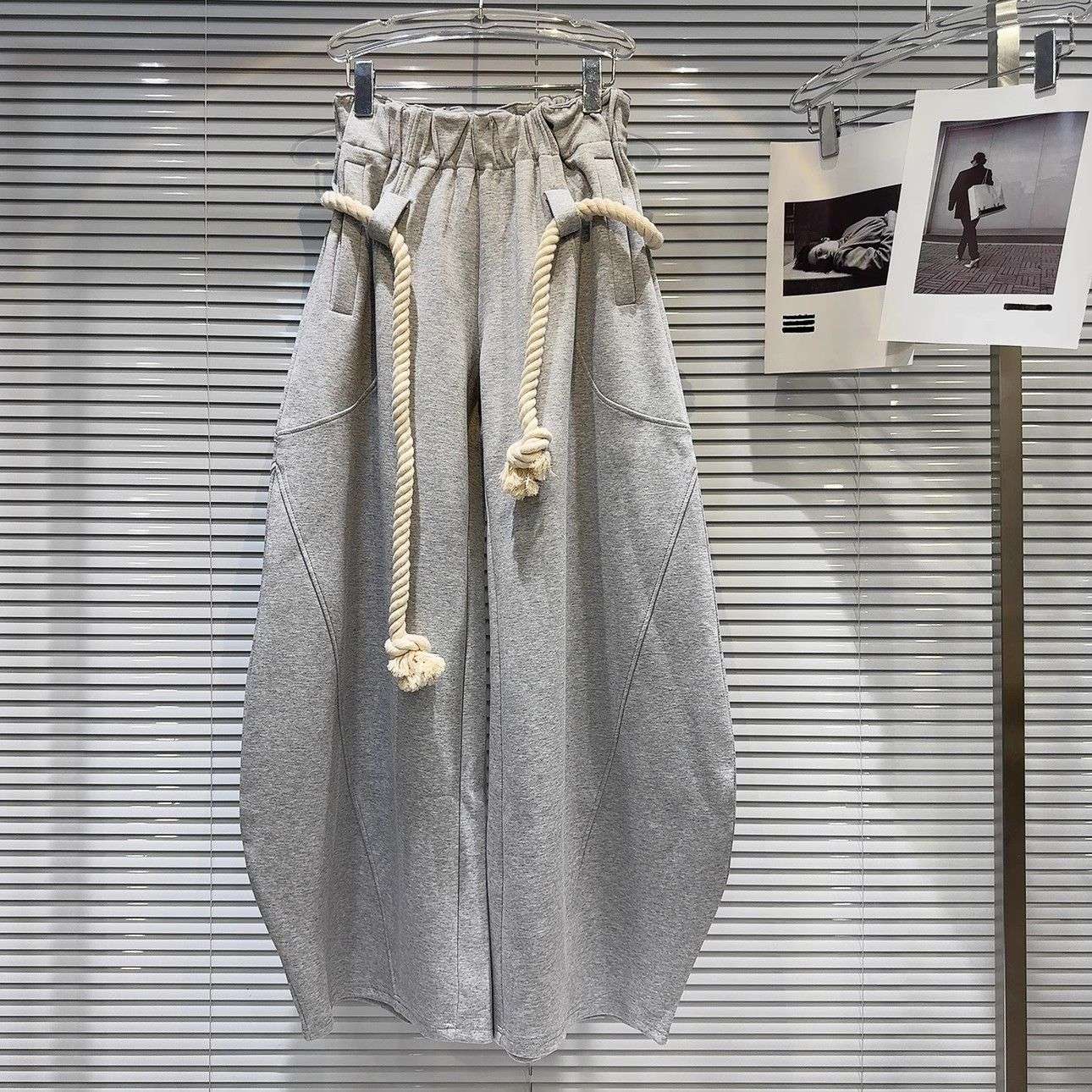 2025 New Women Personalized Woven Hemp Rope Belt Loose Wide-leg Casual Pants Bloomers