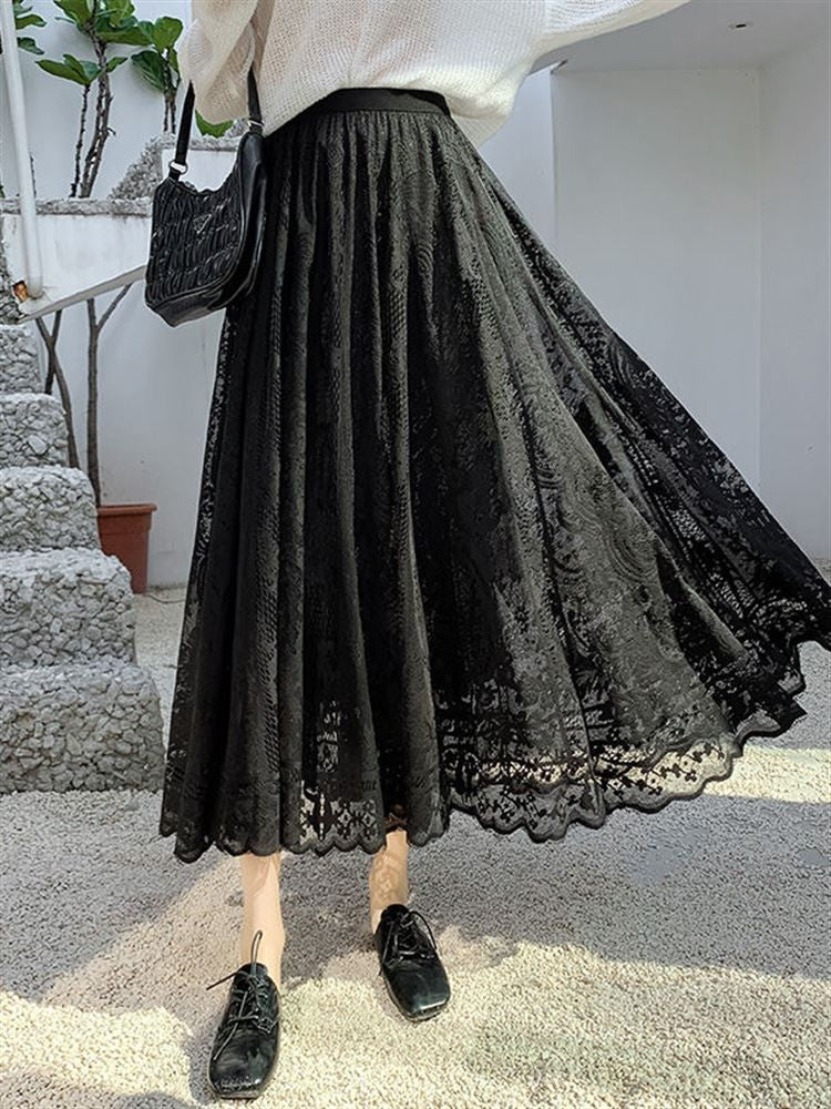 Plus Size plus Size Lace Hollow out f Skirt mid Waist Long Sle Fairy Skirt A-Line Umbrella Skirt Trendy Women's Clothing
