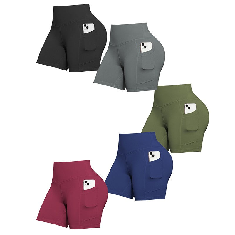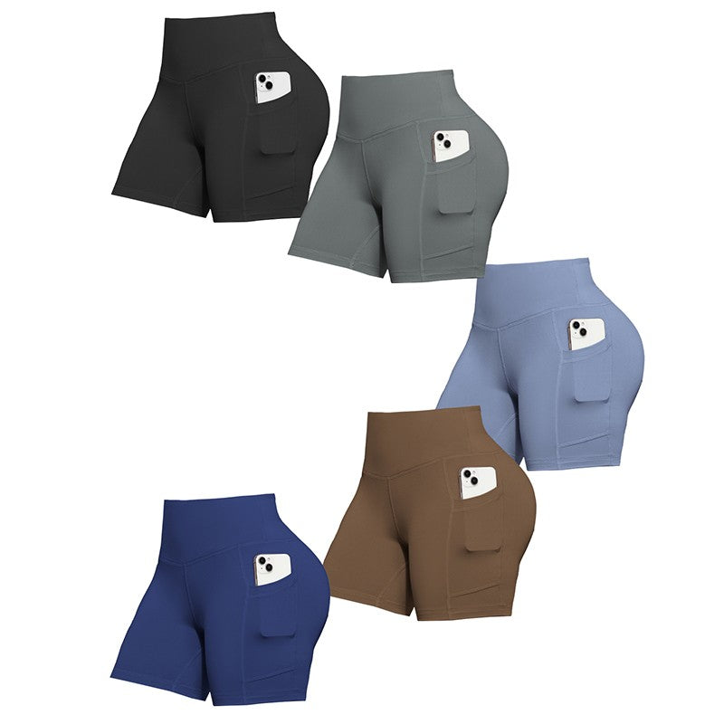 Solid Color Women Shorts with Pockets Butt Lifting Workout Cycling Tights Outdoor Jogging Shorts Fashion Streetwear