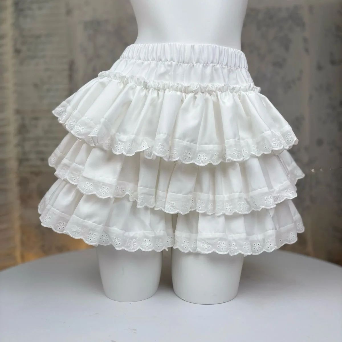 Sweet lace short skirt, white lace cake skirt, women's summer high waisted A-line fluffy cake skirt, half skirt