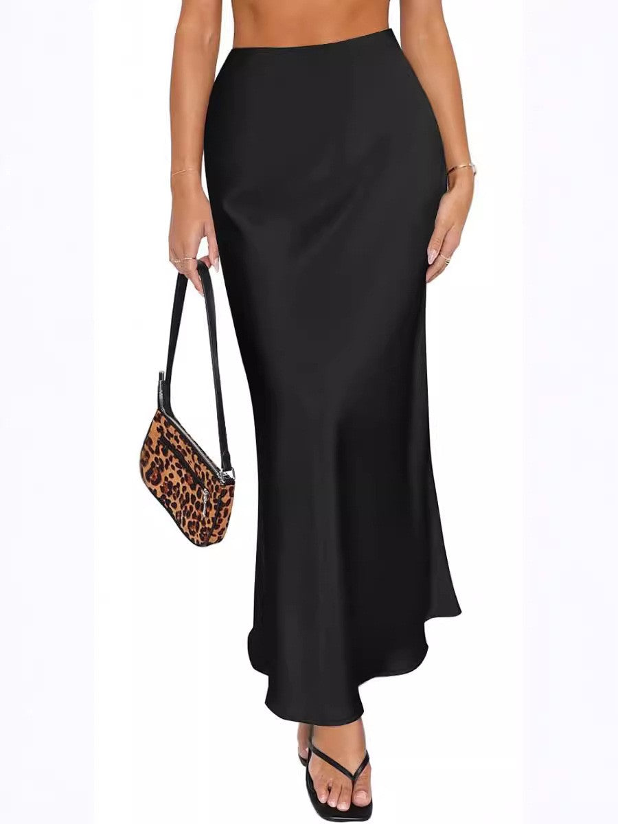 Women Summer Beige Long Skirts Trends 2025 High Waist Maxi Summer Skirt Rayon Silk Pencil Side Slit Satin Skirts For Women