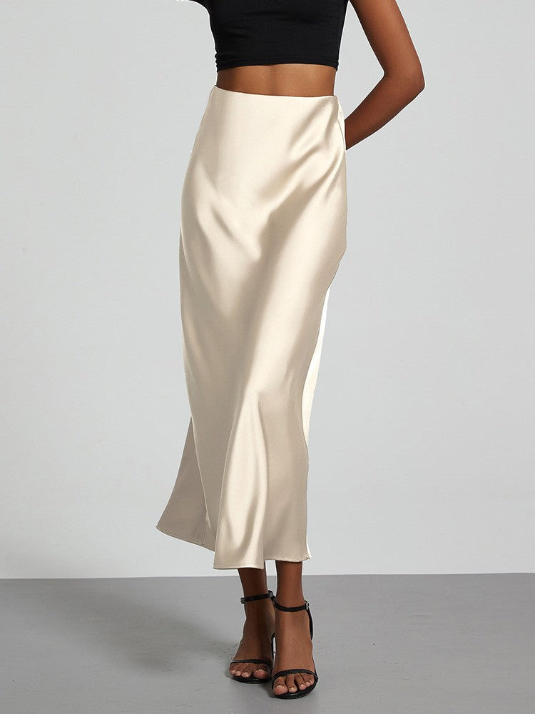Fashion Satin Party Long Skirt High Waist Solid Color Casual Basic Women Skirts Fishtail Skirt Chic Summer Woman Clothing 2025