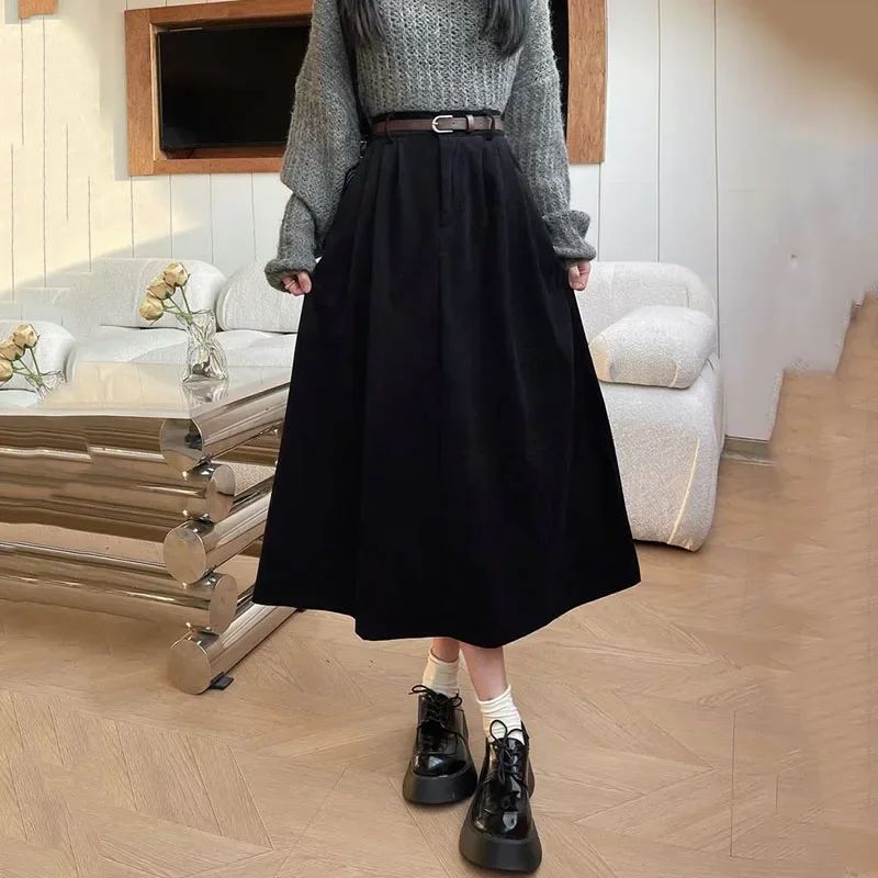 Vintage Corduroy Long Skirt Women Autumn Winter High Waist Pleated Skirts 3 Colors Warm Mini Dress Korean A Line Midi Y2k Skirt