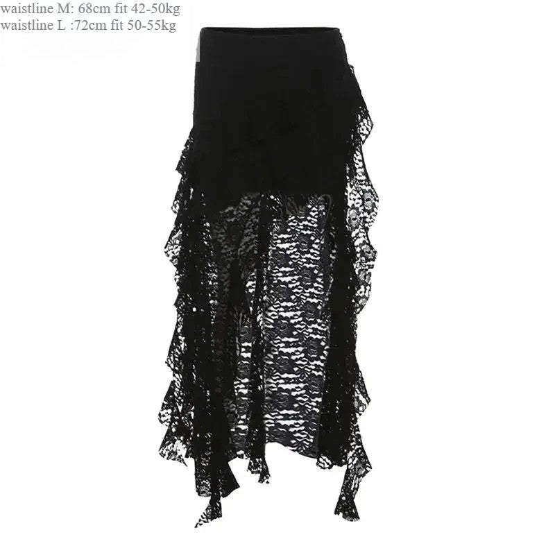 Gothic Skirt 2000s Summer Women's Clothes Gyaru Kpop Streetwear Lace High Waist Casual Aesthetic Long Skrit Femme Hip Hop Skirts