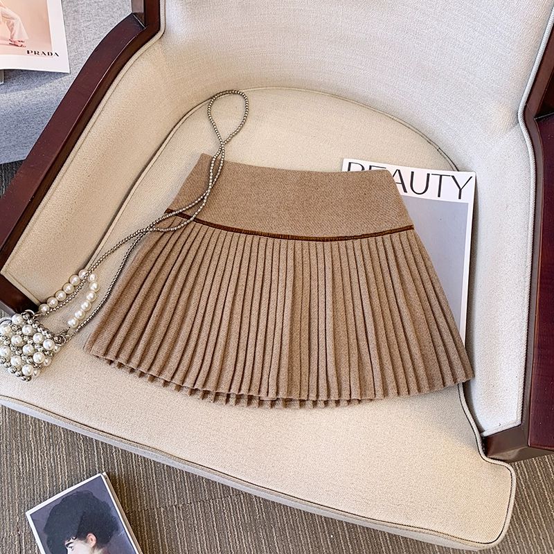 Plaid Pleated Mini Skirt Thick Wool Short Skirt High Waist Box-pleat Miniskirt for Women Teen-girl Preppy Style Outfit