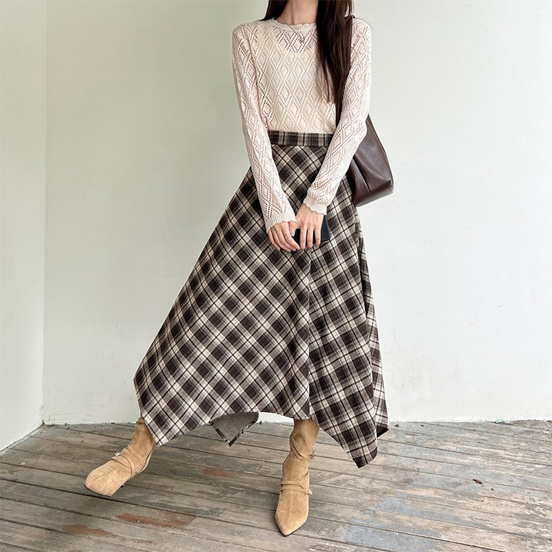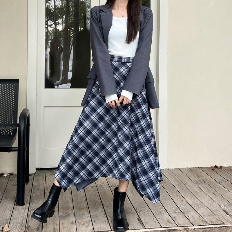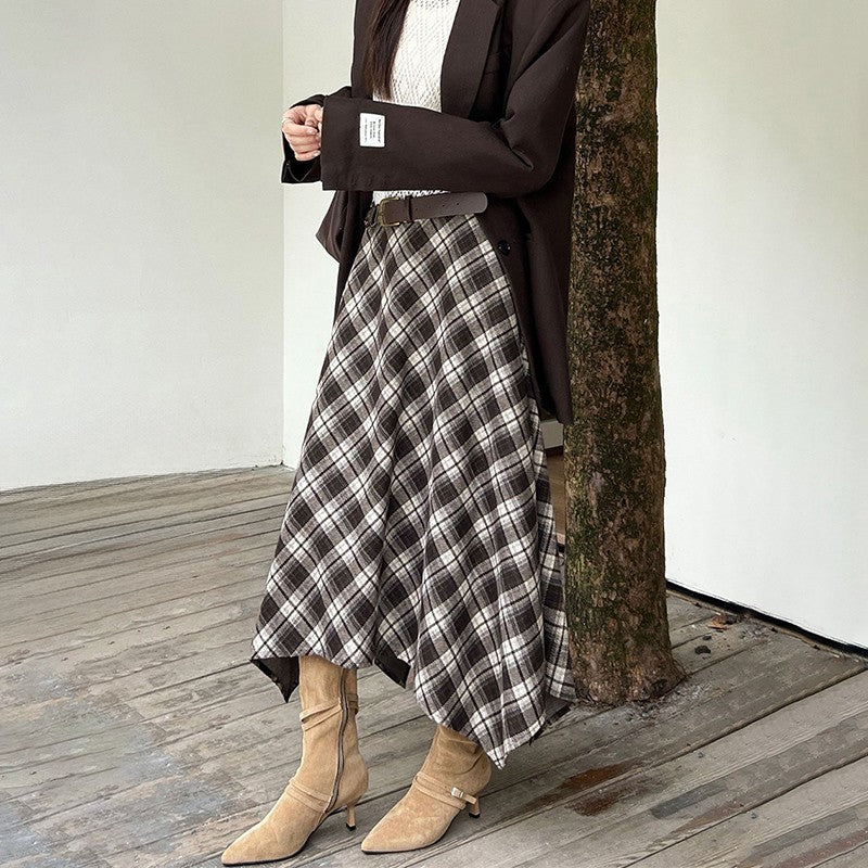 2025 Irregular Vintage Plaid Long Skirts Women Fashion Street High Waist Midi Skirt Woman Contrast Color Casual Pleated Skirts