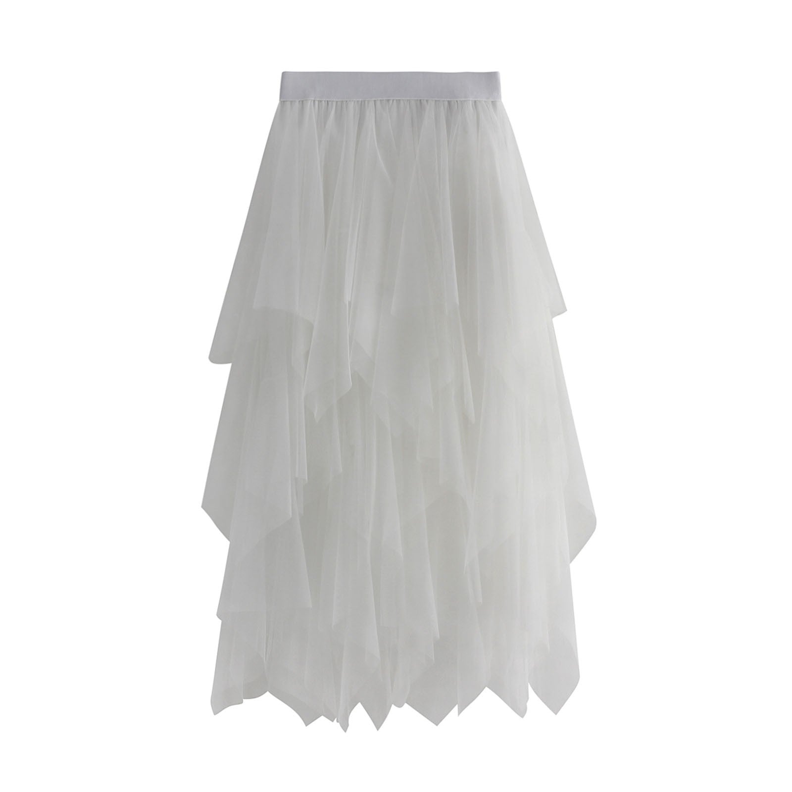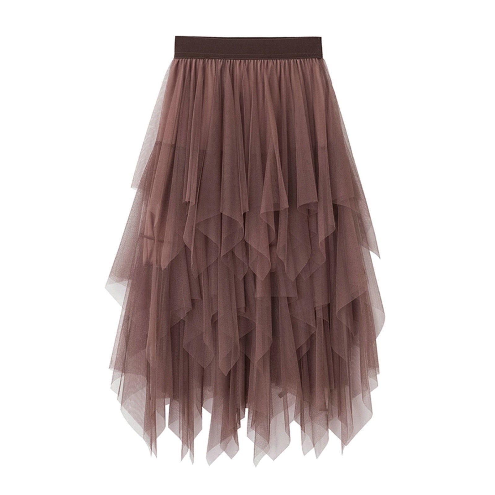 New Fairycore Lady ´s Fashionable Sexy Solid Color Mesh Skirt, Irregular Elastic Tulle Bubble Skirt, Daily Life and Vacation