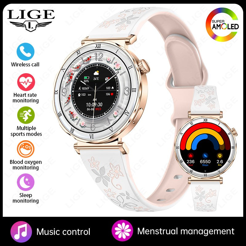 LIGE New Ultra Thin Smart Watch Women Screen Always Display Time Diamond Luxury Bracelet Voice Calling AMOLED Smartwatch Ladies