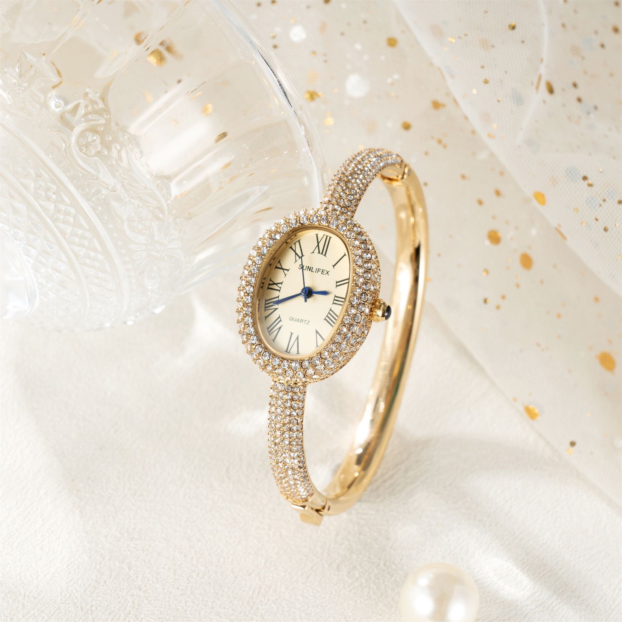 New Luxury Elegant ladies' Bracelet Wrist Watch Roman Numeral Inlaid Rhinestones Oval Waterproof Women's Quartz Watch Reloj
