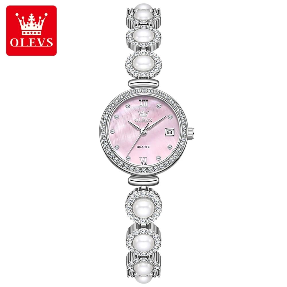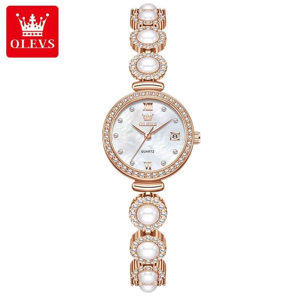 OLEVS 5635 Vintage Diamond Encrusted Luxury Quartz Watch for Women Elegant Stainless Steel Bracelet Fashion Top Brand Wristwatch