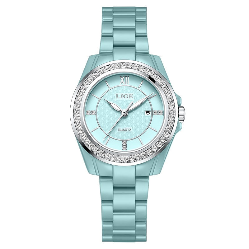 LIGE Fashion Quartz Watch for Women Stainless Steel Ceramics Strap Waterproof Women's Watches Elegant Luxury Ladies Wristwatch
