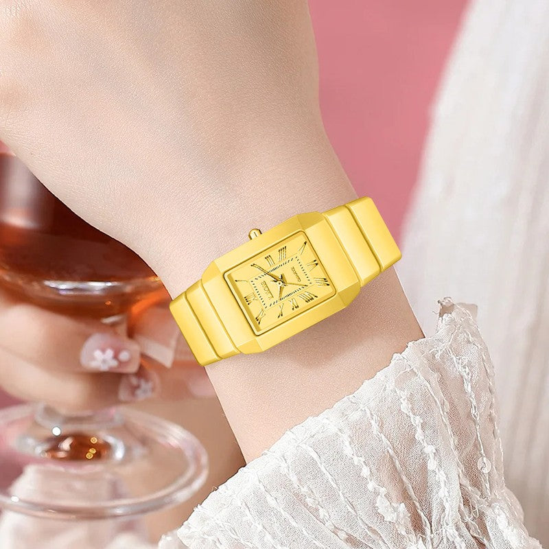 Minimalism Watch For Women 41mm Case with PVD Finish Rubber Strap