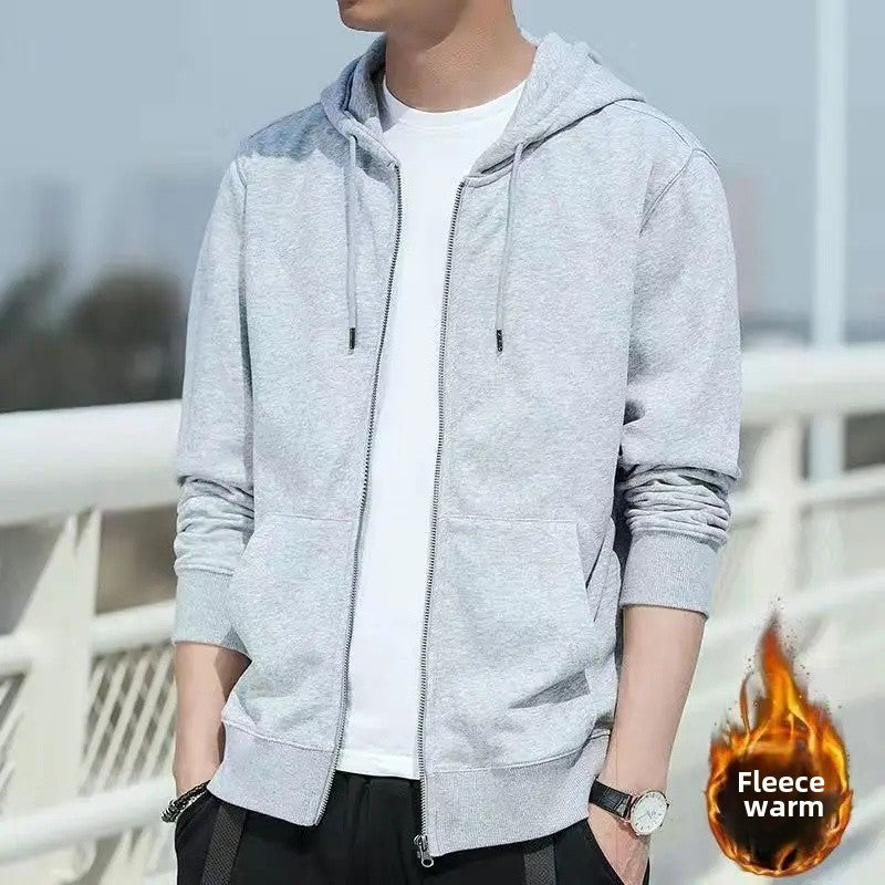 Men's Fleece-Lined Warm Jacket 2024 Autumn Winter New Cardigan Sports Top Casual Hooded Sweatshirt Regular Length China Origin