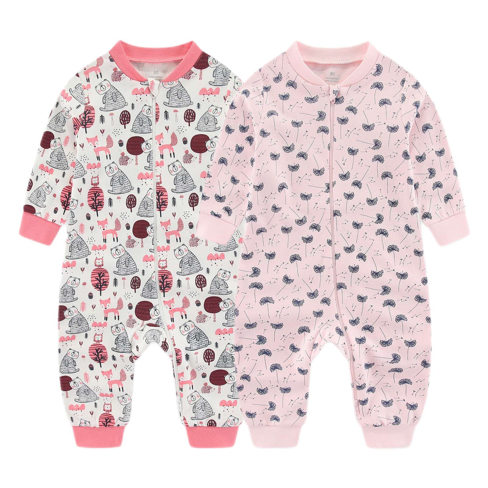 Kiddiezoom 1/2Pcs Fashion Christmas Cartoon 100%Cotton zipper Baby Boy Girl Rompers Soft newborn Clothes
