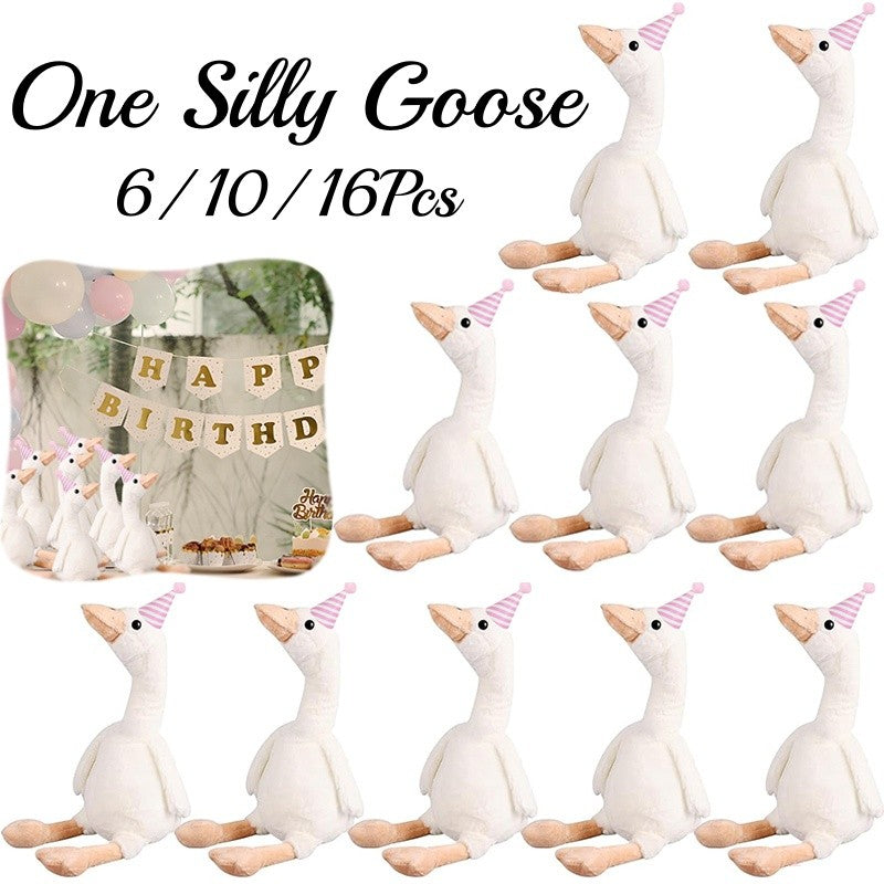 6/10/16Pcs One Silly Goose Birthday Decor 11.8 Inch Goose Stuffed Animal With Pink/Blue Hats Mini Birthday Party Hats